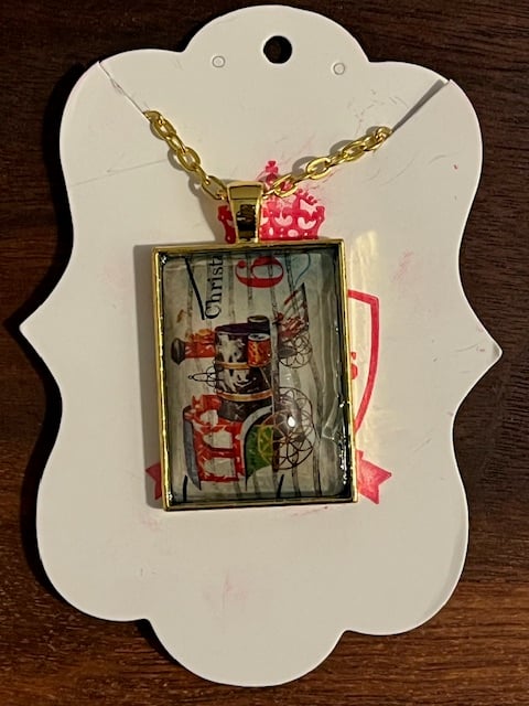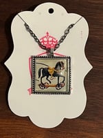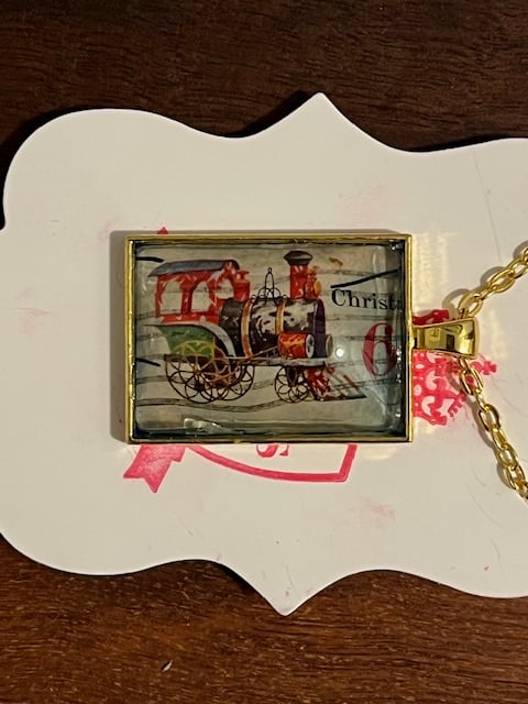 Two different settings and colors are available, Rocking Horse dark silver square and Train gold rectangle.
