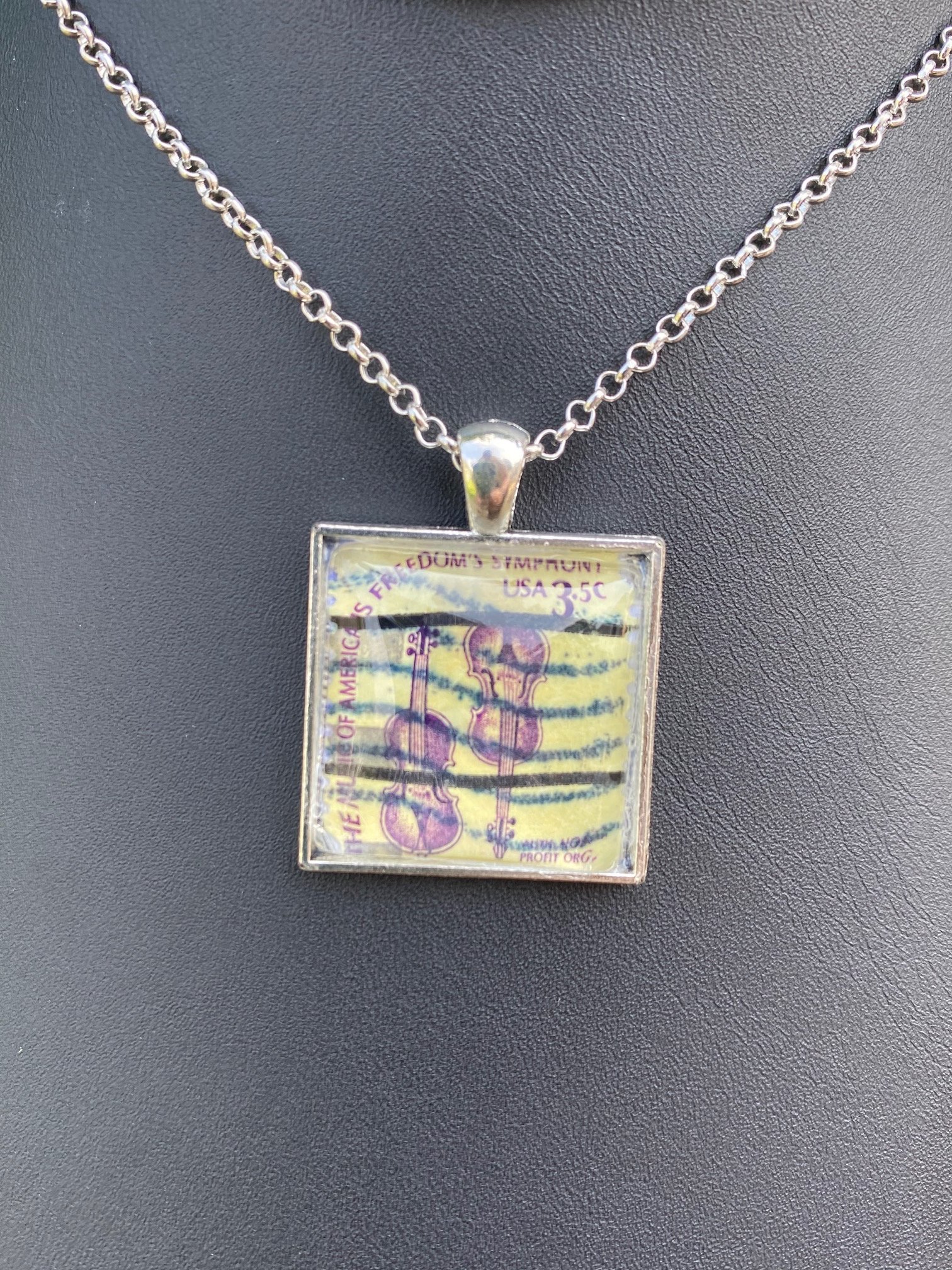 Preceded by the harp and the lyre thousands of years ago, the violin is the best-known and most widely used of all orchestral instruments. U.S. #1813 has the inscription “The music of America is freedom’s symphony.”